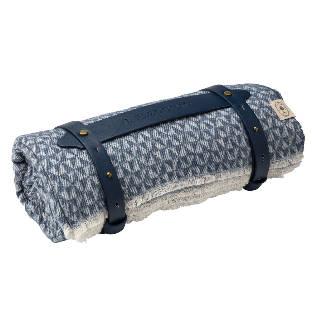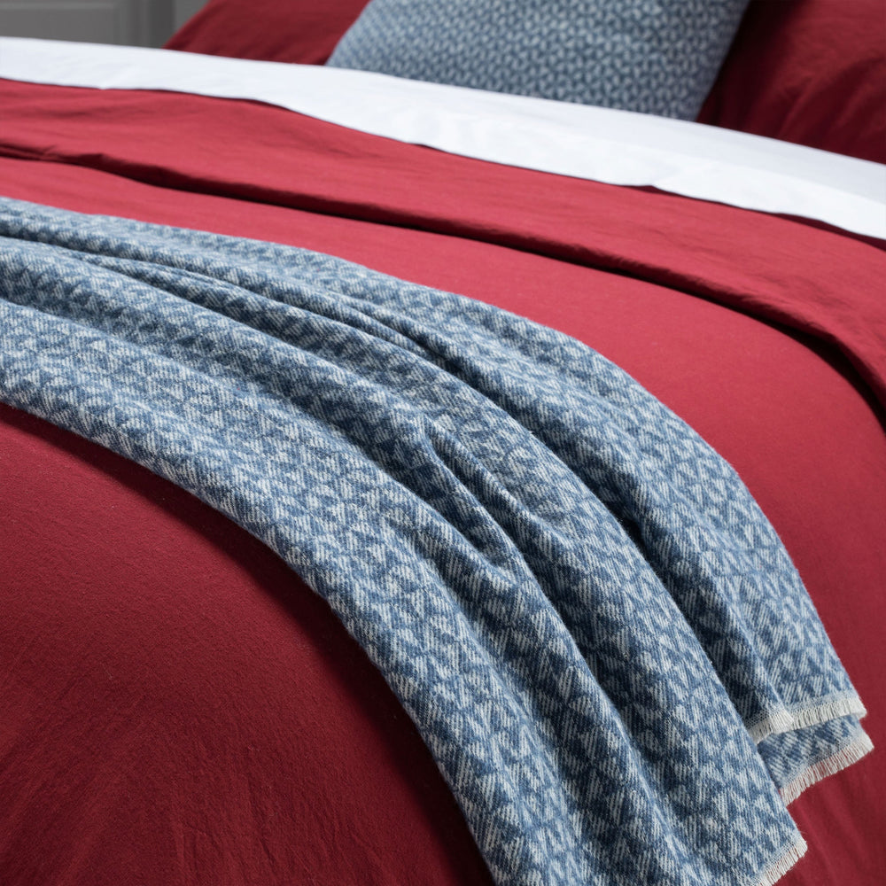 Deléitese con el lujo de la manta italiana de algodón con patrón geométrico de Garfagnana y ribete vegano.