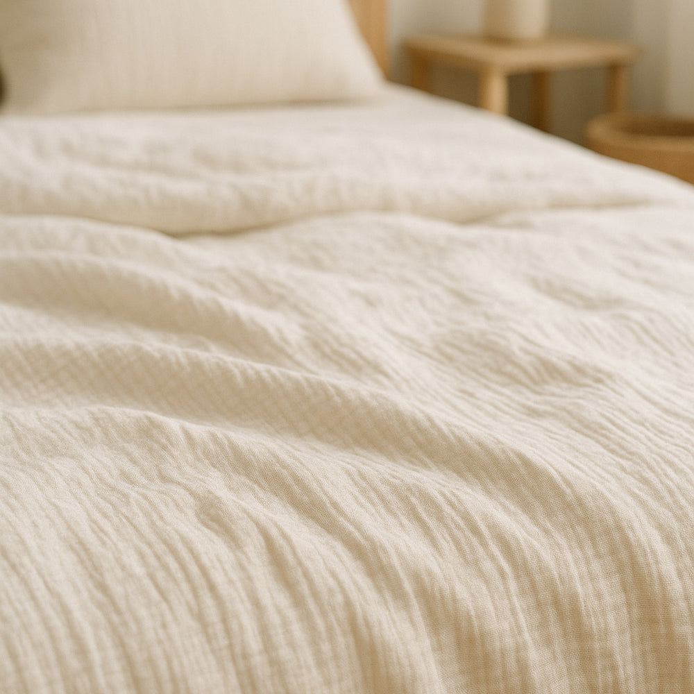 Concedetevi il massimo comfort con il nostro set copripiumino in mussola di lusso, realizzato in Italia con la più pregiata mussola traspirante. Questo set offre una morbidezza e leggerezza che favoriscono un sonno ristoratore, aggiungendo un tocco di eleganza alla vostra camera da letto. La sua trama naturale garantisce durata e uno stile senza sforzo, rendendolo un investimento perfetto per chi apprezza sia il lusso che la praticità. Elevate la qualità del vostro sonno con questo squisito set copripiumino di produzione italiana.