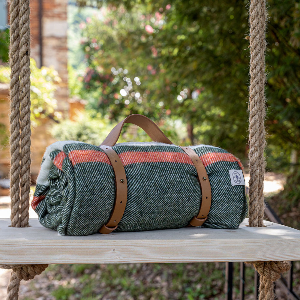 Concediti un lusso con la coperta a fascia Viareggio, realizzata in morbido cotone italiano e dotata di passanti vegani.