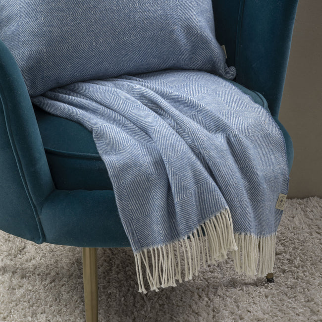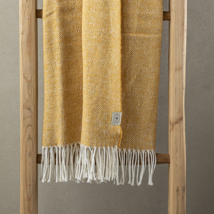 Dimensions: 51x71 inches with fringes. Materials: 70% Cotton - 25% Polycarbonate - 5% Polyester.